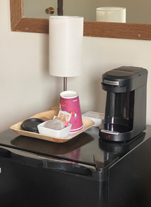 Our newest suite featuring two bedrooms, full bathroom, fully stocked kitchen and living and dining areas.